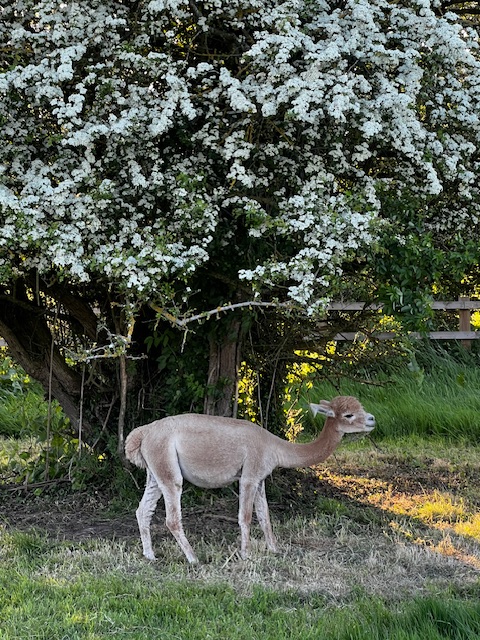 We are preparing to offer Alpaca Experiences. Walk around the farm with a knowledgeable guide, find out about the animals and their characters, take as many pictures as you like. A ‘kiss’ by Alfie the alpaca is optional!